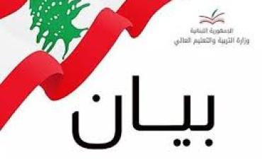 بيان حول إقفال جميع المدارس والثانويات الرسمية والخاصة ومؤسسات التعليم المهني والتقني